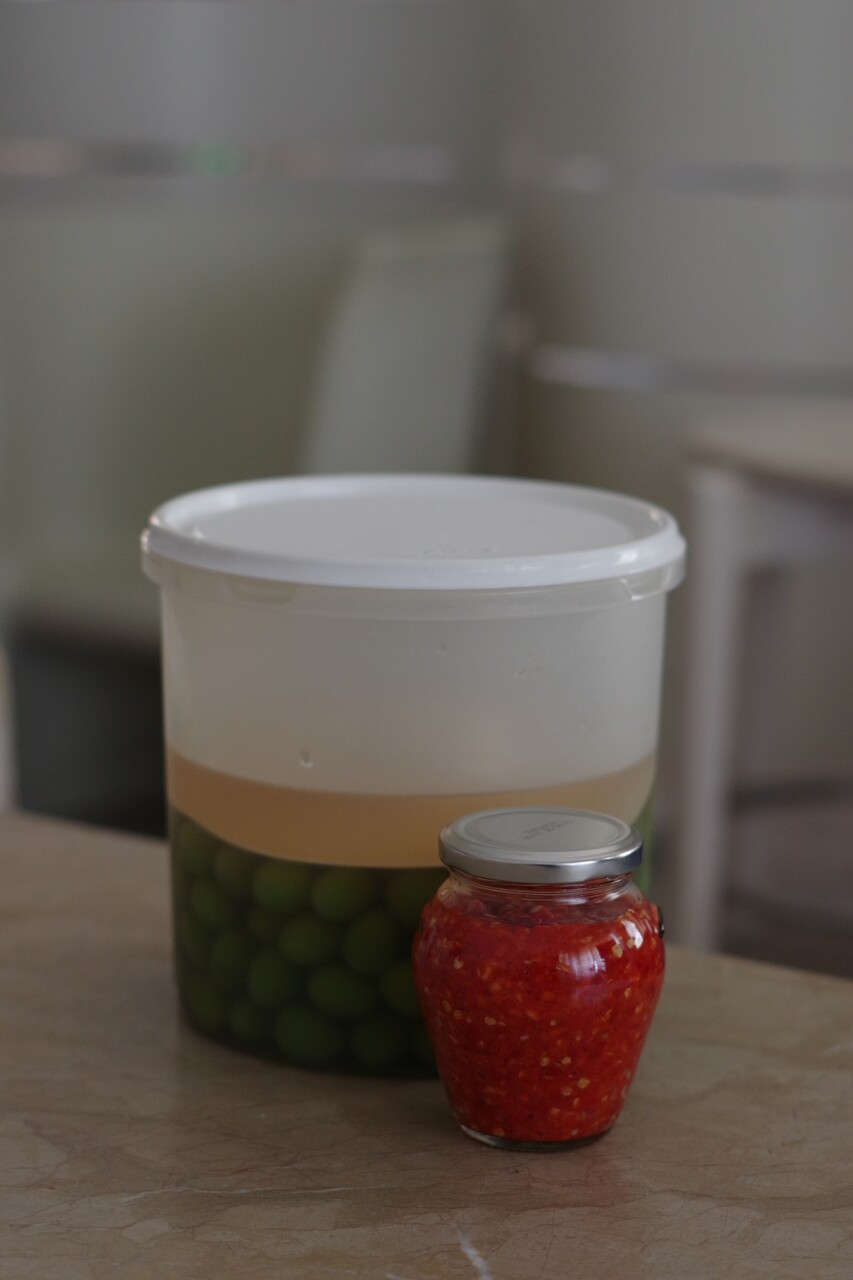この秋は本当に絶え間なくオリーブと唐辛子加工品を仕込んでいたもので、置き場にも困るほど