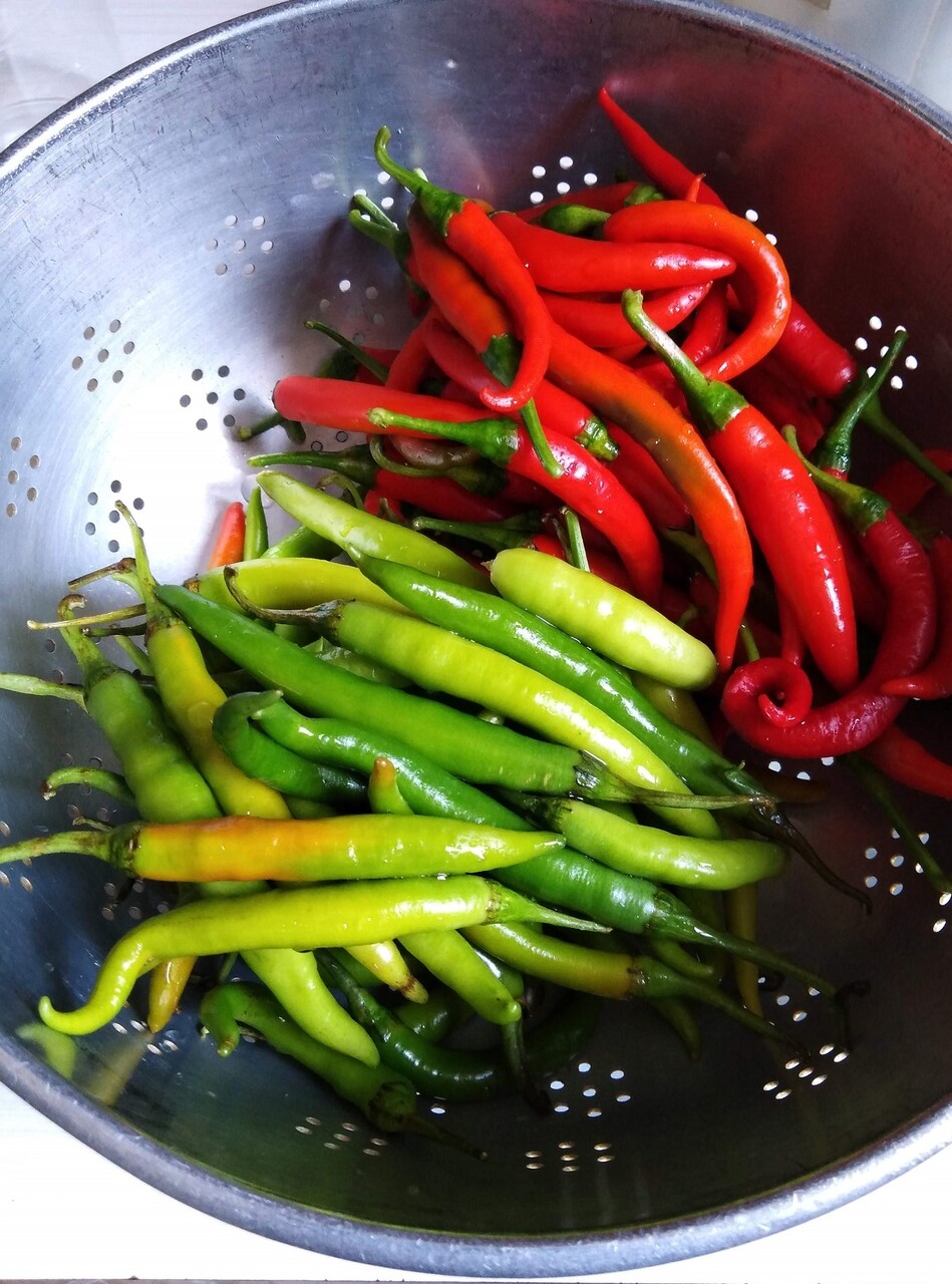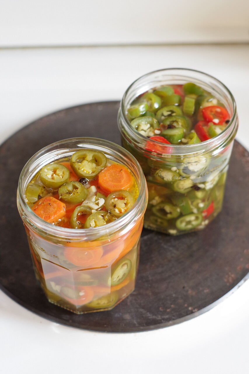 そして、さすがにもういいよね……と思ってたらエクサルヒアの青空市場でちょっとハラペーニョを思わせる肉厚な青唐辛子が普通のに混じって一束だけ売ってるじゃないですか!これもスルーできず思わず購入(笑)こちらのサイトを参考に、ピクルス2種類に加工しました。