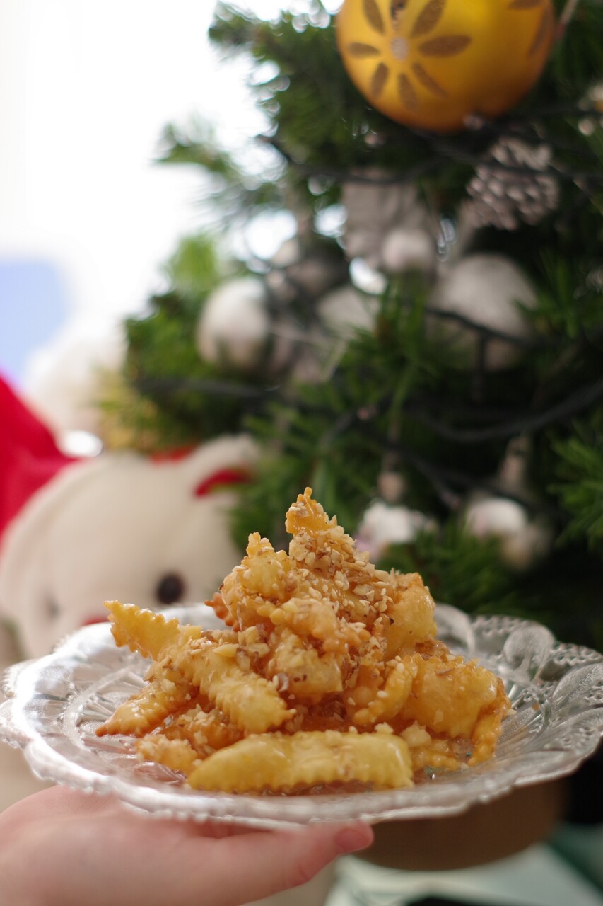 いつも作るクラビエデスは今回パスしました。トップの画像はギリシャの3大クリスマス菓子のひとつ、ディプレスという揚げ菓子です。