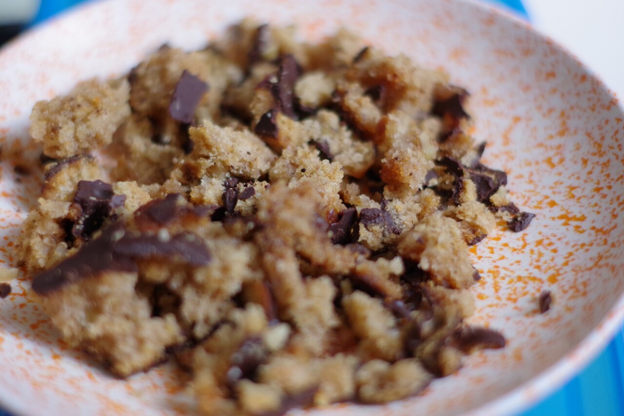 メロマカロナは早めに作ってたのですが、あっという間になくなってしまったので2回目にチョコレートがけのを作りました。今年はどちらも薄力粉ヴァージョンで、生地に細かく砕いたくるみを少し混ぜてみました。普通の作り方だと、くるみは仕上げにまぶすだけか、フィリングとして中に入れます。