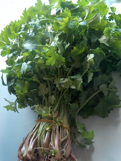 日本でお馴染みの茎が太く瑞々しいものとは随分違って、見た目はイタリアンパセリと間違えそうな感じ。イタリアンパセリよりは葉がゴワゴワしていているのですが、たまに繊細な葉っぱのものもあって、本当に間違えそうになったこともあるんですよ^^;