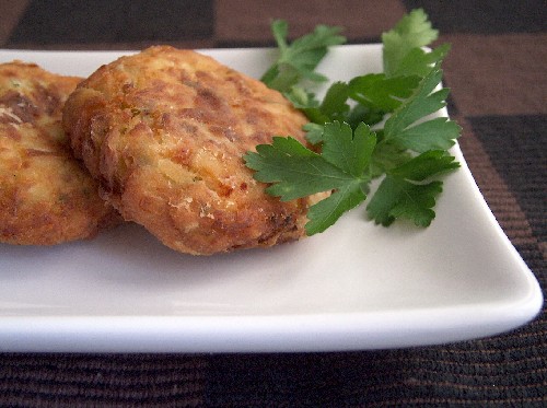 フェタチーズをフォークで砕いて野菜に加え、味を見て必要なら塩も足す。胡椒、ハーブ類、卵も加え混ぜ、まとめられるぐらいの固さになるまでパン粉を加え混ぜ合わせる。時間があれば、冷蔵庫で数時間冷やす。