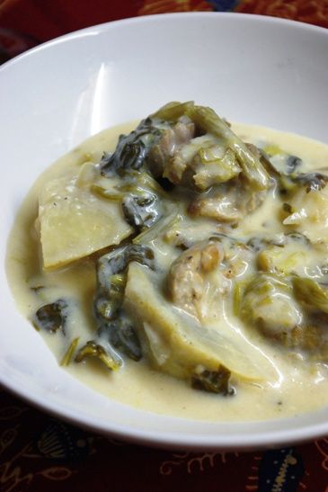 以前にも載せたことがありますが、豚肉と根セロリの煮込み・アヴゴレモノ仕立て(ヒリノ・メ・セリノリザ)です。
