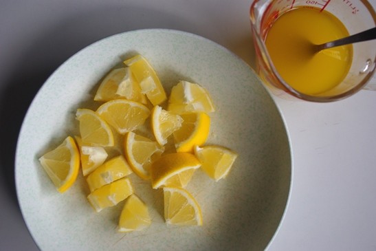 FPにレモンと砂糖を入れ、ピュレ状になるまで刻む。