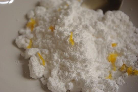 冷ましてから、お好みでアイシングをかけてどうぞ。粉砂糖適量に、今回は生レモンソルトを少し加えました。レモンの皮(あれば)と塩少々でもいいです。ここにレモン汁を少しずつ加え混ぜ、緩くしすぎないよう注意しながら、とろりとした状態にします。