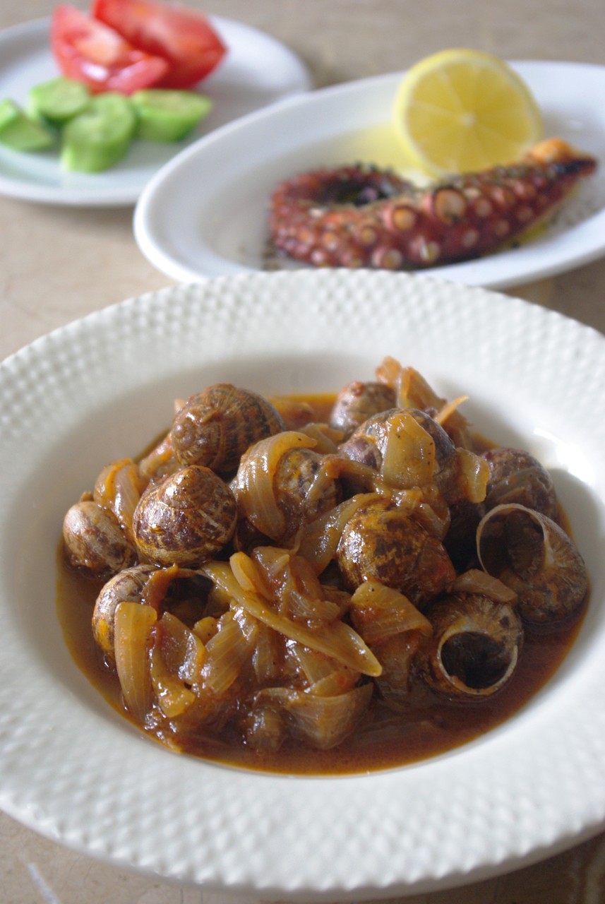 カタツムリ(エスカルゴ)はギリシャでも結構よく食べられますが、特にクレタ島で好まれる食材で、調理法もかなりバリエーションに富んでいます。