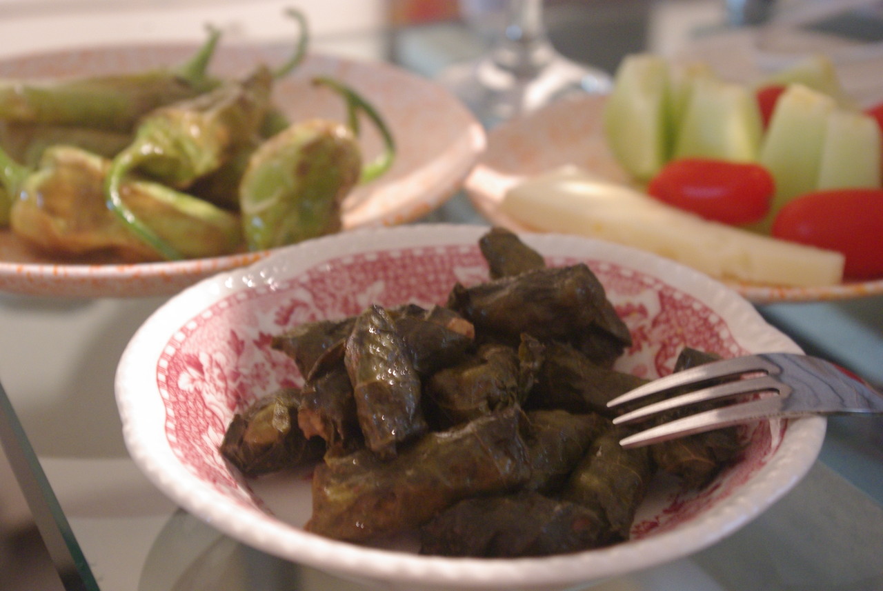 肉なしのドルマダキァは室温もしくは冷蔵庫から出したそのまま食べます。そこそこ日持ちするので、毎晩のメゼタイムのお楽しみに。