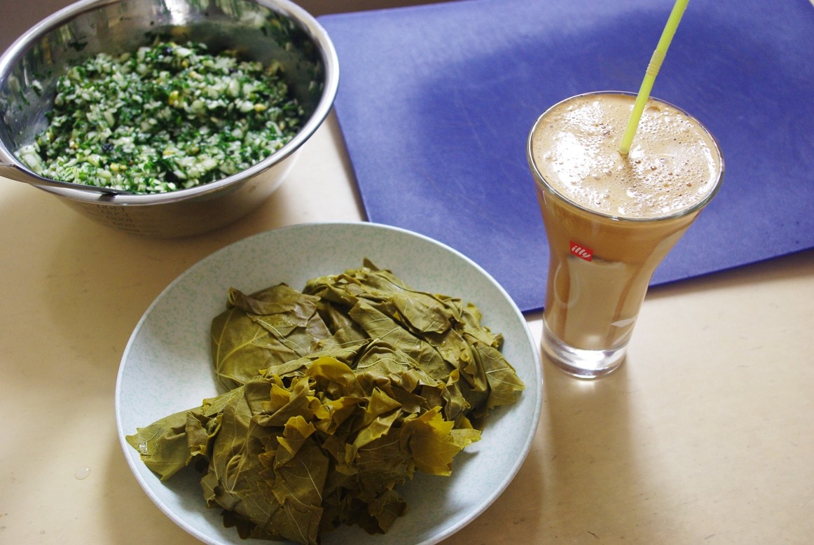 ぶどうの葉で米やハーブのフィリングを包んだドルマデス・ヤランジ。うちのは小さく作るのでドルマダキァです^^