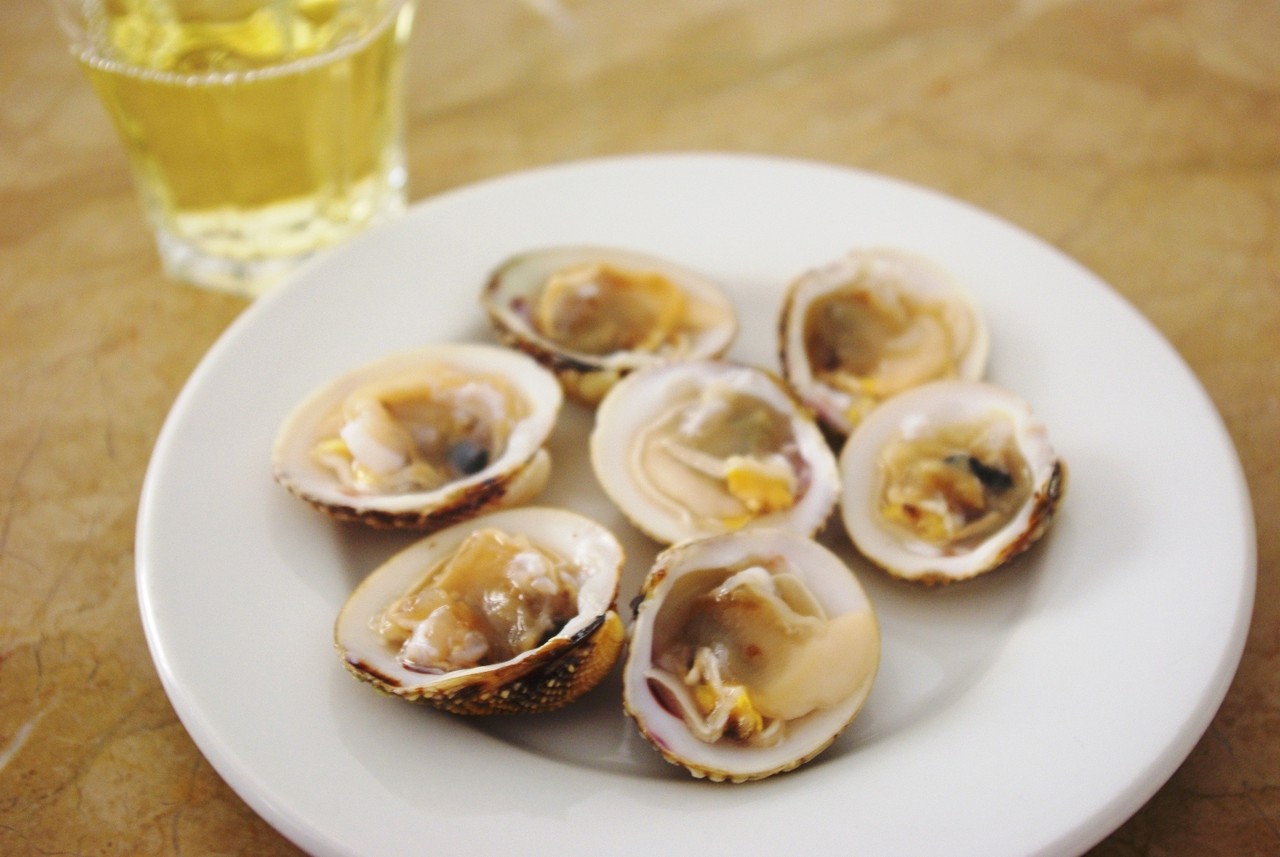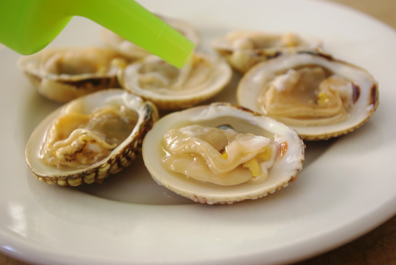 これで最初に食べてみたのが、生の貝。王道ですね。