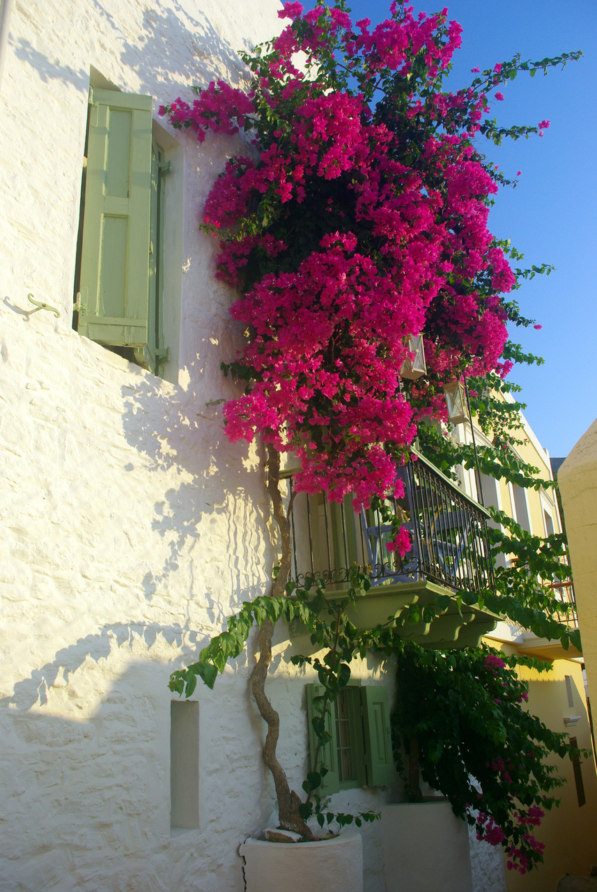 写真はいまいちですが、白いブーゲンビリアと夾竹桃の向こうに集落を望むこの風景が絵のようで気に入っています。