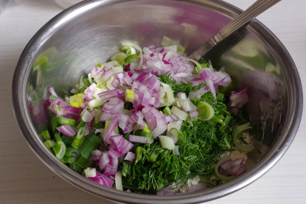 MEMO:卵やチーズを生地に混ぜて作ってもいいです。チーズはパスタにかけるようなタイプのチーズをすりおろしたもの、砕いたフェタチーズなどお好みで。