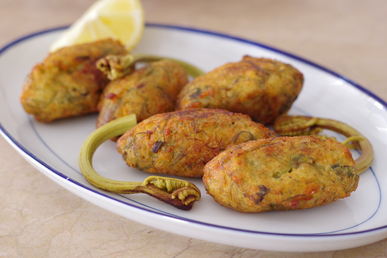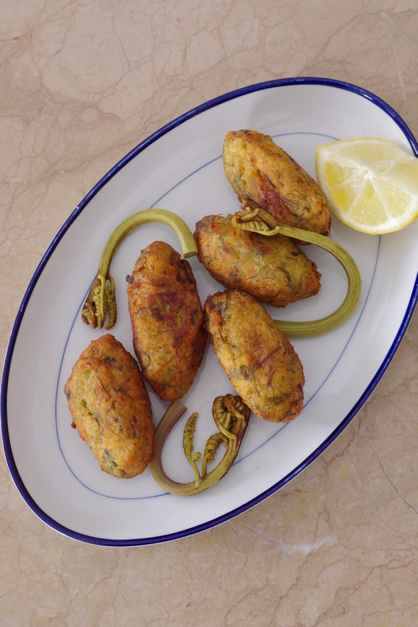 作り方はこちらの記事に書いた通り、書籍版「ギリシャのごはん」(イカロス出版)に掲載しているアスパラガスのケフテデスと同じです(下準備だけ少し違って、わらびの場合はあく抜きして茹でる)。