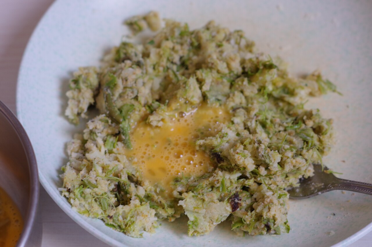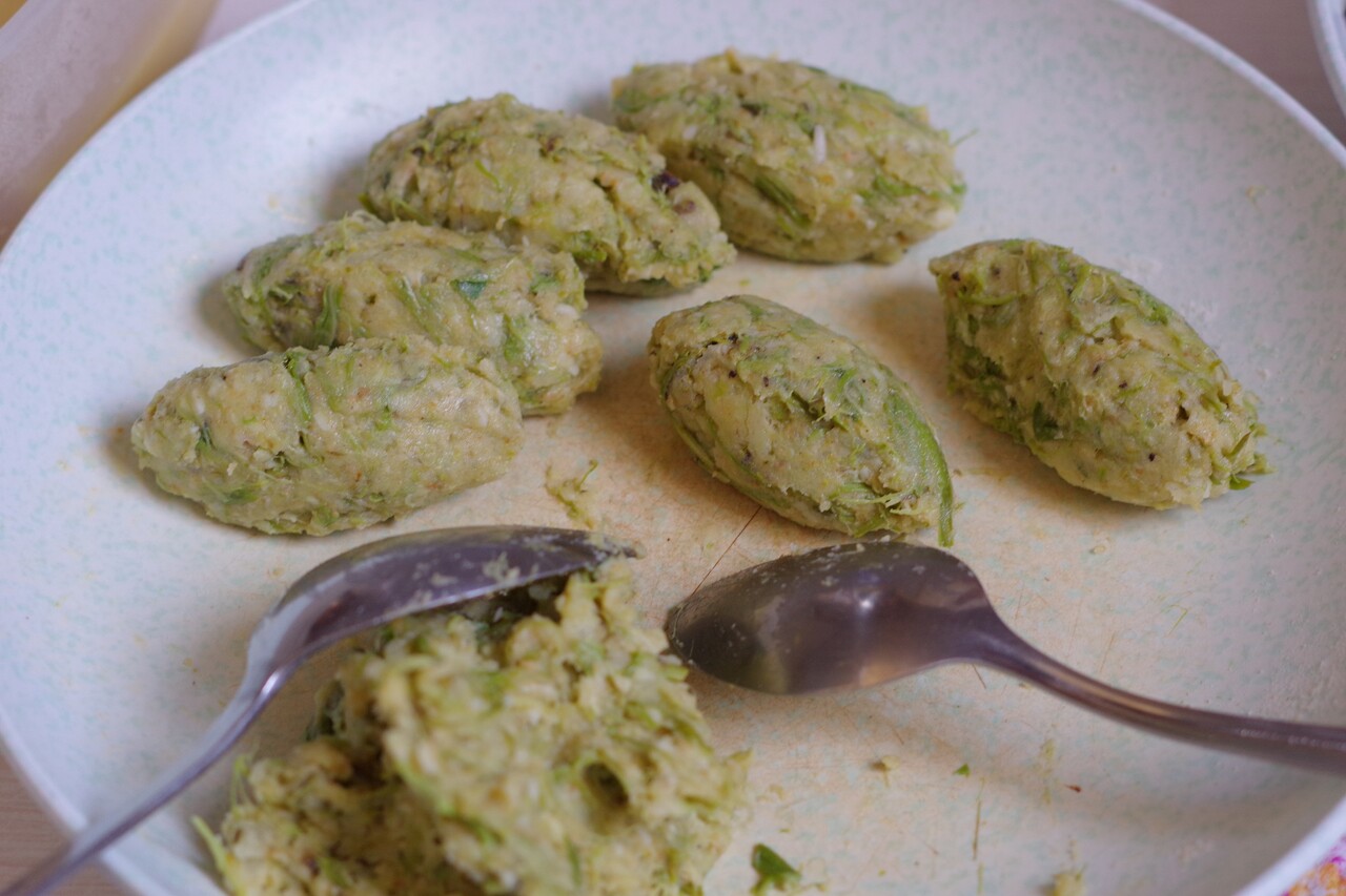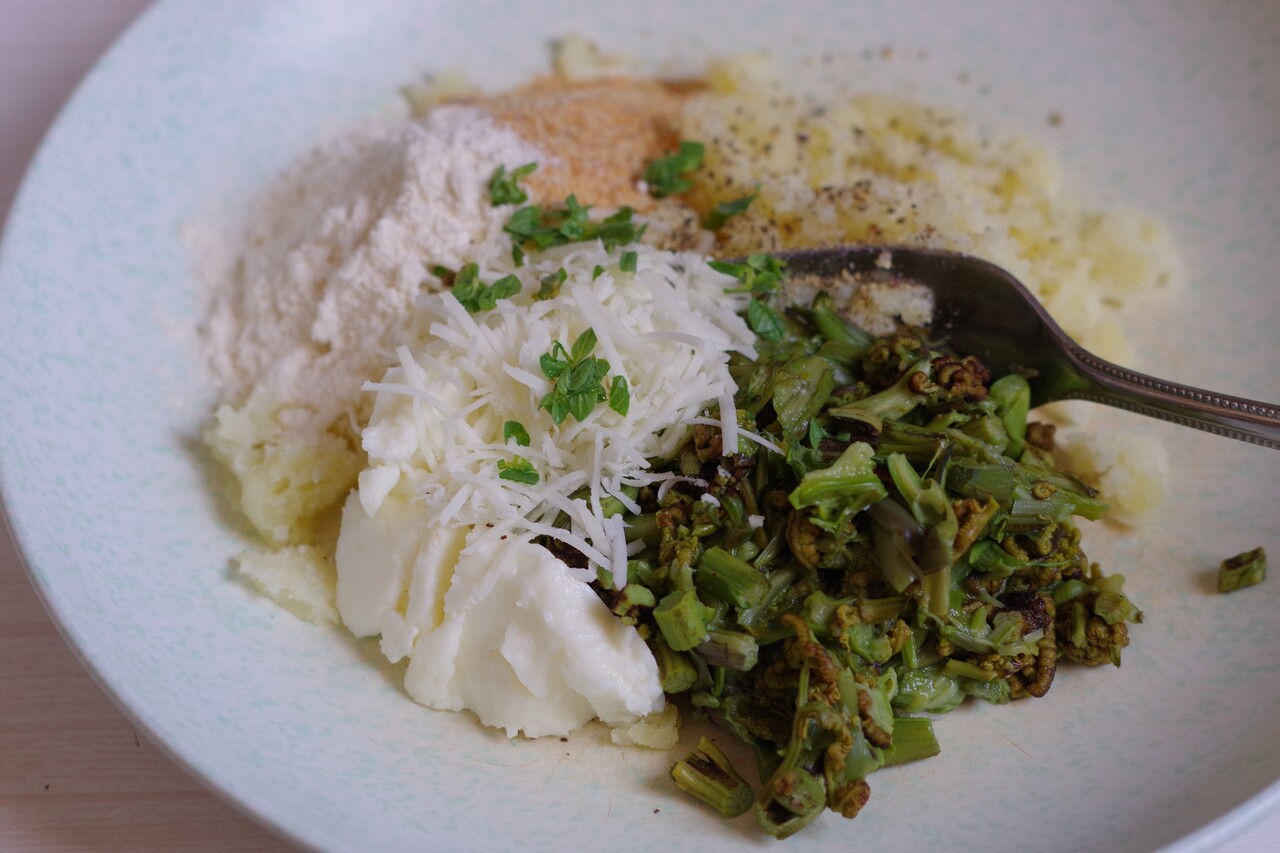 つなぎやチーズを混ぜて、ハーブはオレガノを少し。ギリシャでオレガノは乾燥のものをよく使いますが、ピリオではフレッシュなオレガノもよく使われるようで、フテロケフテデスにもできれば生のものを使った方がおすすめです。時期的に、わらびの旬には生のオレガノも豊富にあるので。