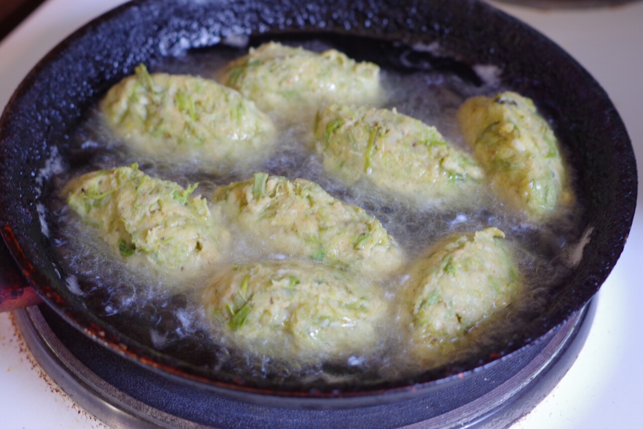 丸めて小麦粉をまぶして揚げますが、こんな風に小麦粉はまぶさず揚げても。