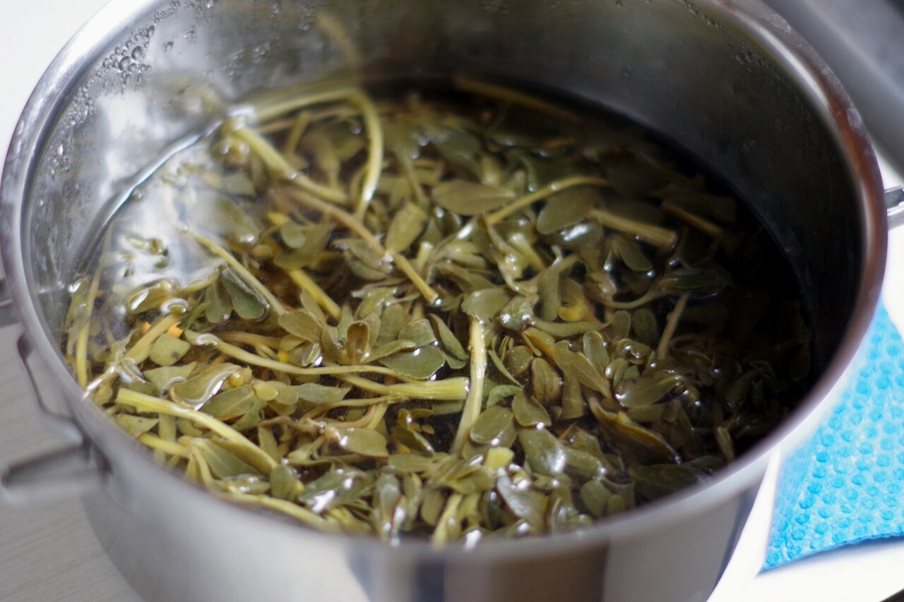 夏に干しておいたスベリヒユで、忘れることなく「ひょう干しの煮物」を作りました。