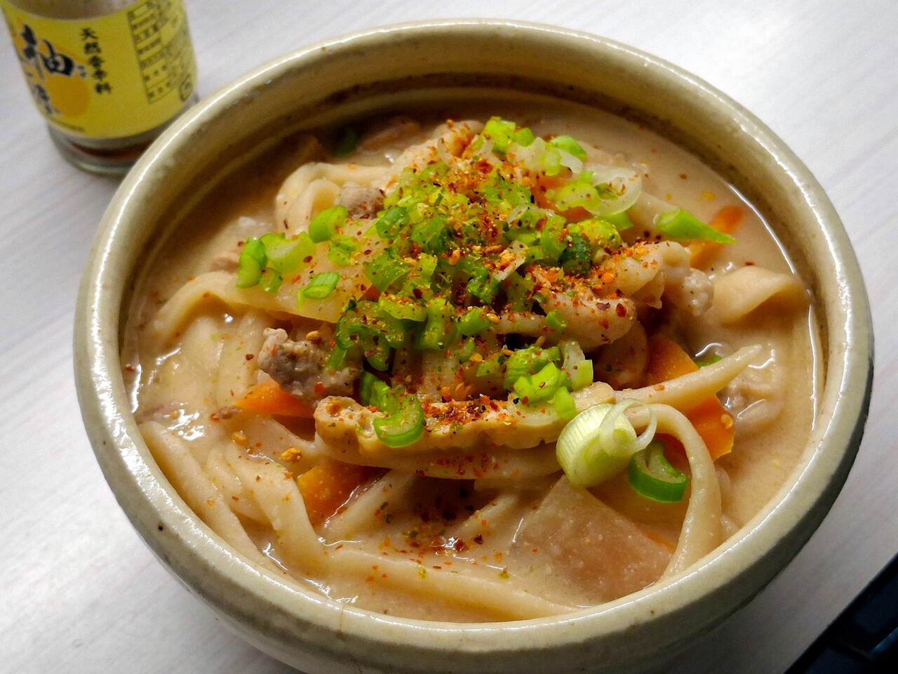 年末に仕込んだどぶろくは早いうちに搾ってしまったので、まだふかふかしてる粕で粕汁も。私はあまり献立に汁物が欲しい方ではなく、メイン的な一品として食べるのが好きなので、うどんを入れてこれだけで完結させることが多いです。