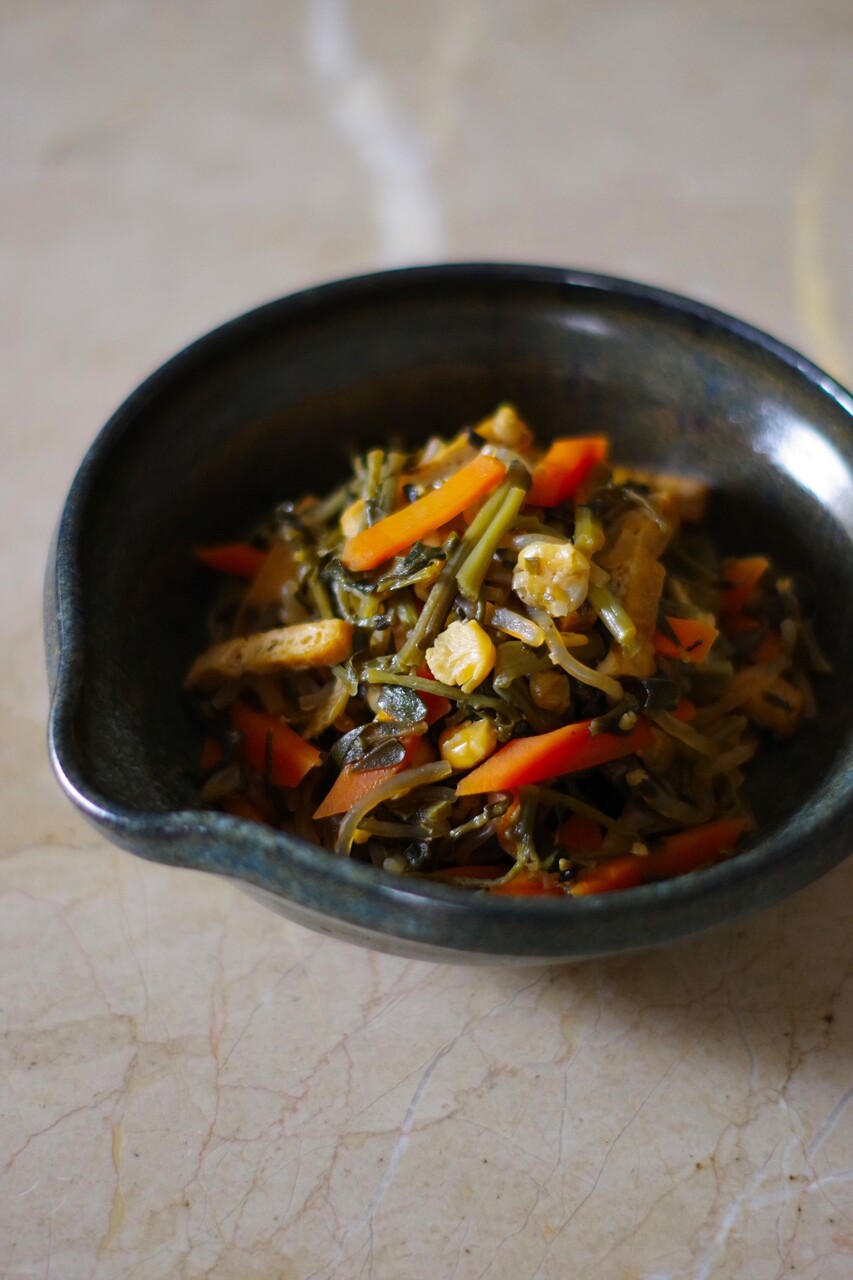 にんじん、油揚げ、しらたき、打ち豆(年末にちょっと作ってあった)をあわせた煮物はしみじみとおいしくて、お正月にあると嬉しいものですね。ぜひこの夏もスベリヒユを干したいです。