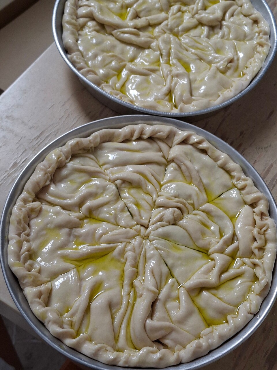 家族の好みに合わせて一応どちらもチーズ入りにしてますが、発酵キャベツは塩気が結構あるのでマイルドなチーズとあわせます。自家製のフレッシュチーズを使うのが味・コスト両方の面でおすすめだけど、市販のアンソティロなどでも(ギリシャ国外ならカッテージチーズやリコッタチーズなど)。