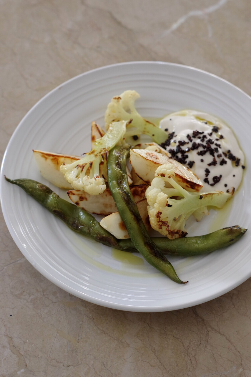 カサラ・デフテラのメニューに使うために茹でた白花豆を、ちょっと取り分けておいて野菜のメゼにしました。