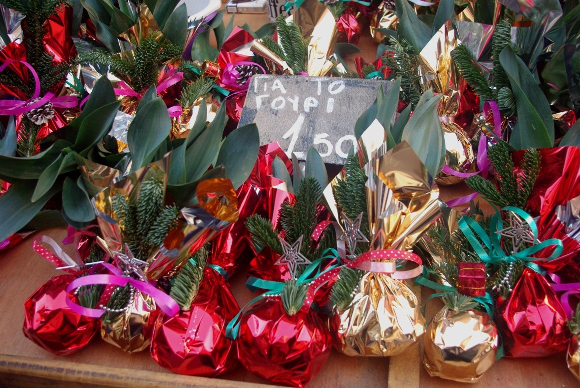 と言っても、おせち料理を作ったりはしないし、張り切ってギリシャ風のごちそうを山ほど用意するわけでもないのですが。お正月というよりも、それを前にした「年の瀬」の空気が好きなんですね。日本のそれとはまた雰囲気も違いますが、普段よりもさらに活気づく市場だとか、新年のお飾りだとかになんとなく懐かしさを感じます。
