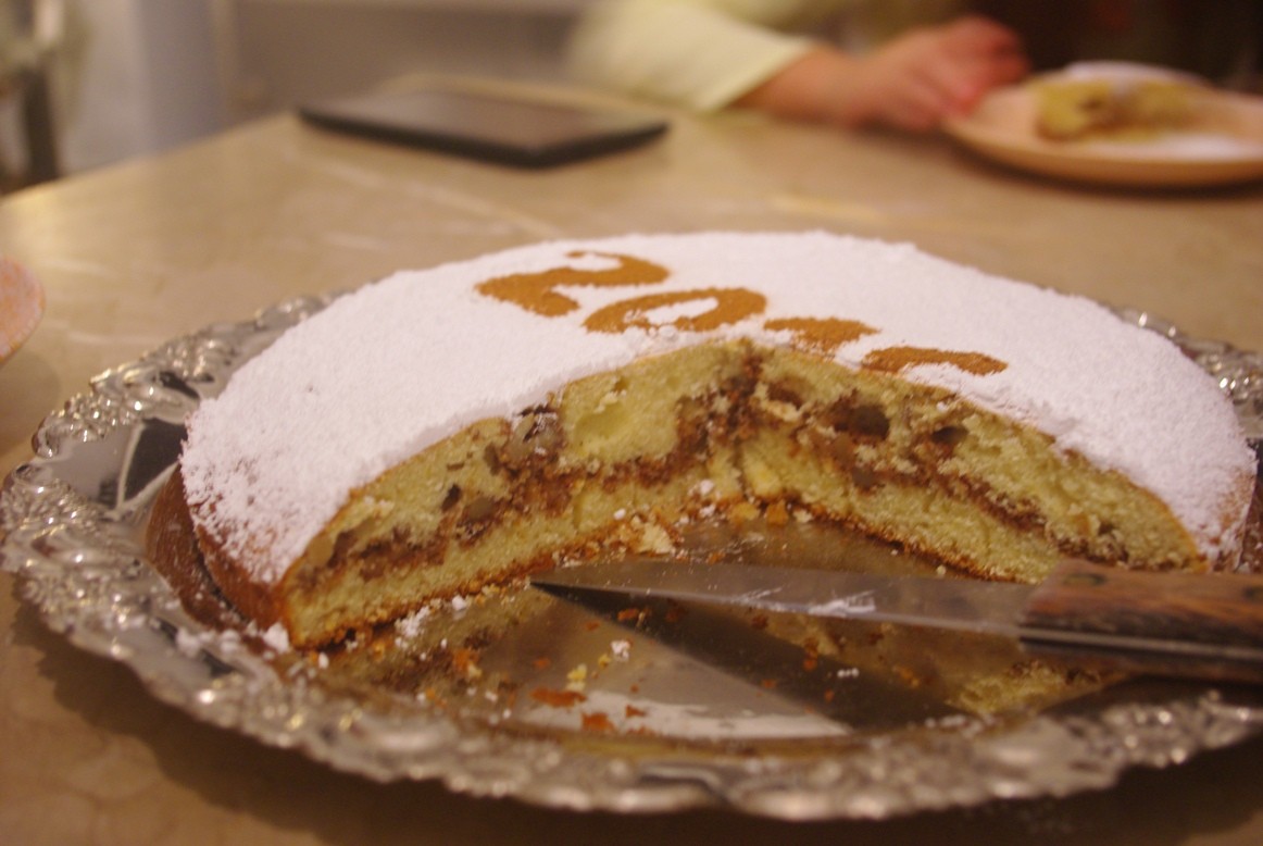 ギリシャの新年のケーキはヴァシロピタと呼ばれる、聖ヴァシリス(カイサリアのバシレイオス)にちなんだケーキ。ケーキ自体は菓子パンだったりシンプルなケーキだったりいろんなバリエーションがあるのですが、中にコインをひとつ入れて焼くのが決まりです。