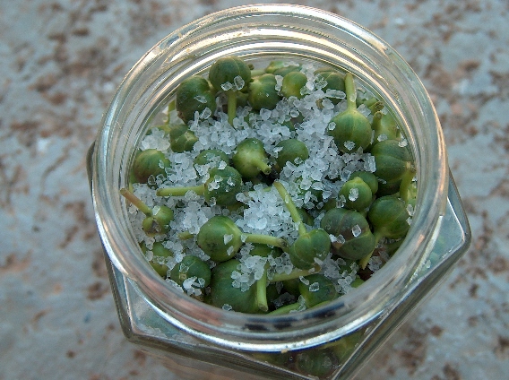 手前に添えてあるのはシミ島で買ってきた穂先ケイパーです。ケイパー(ケッパー)のピクルスは一般的には蕾。また、実(ケイパーベリー)のピクルスも見かけますが、ギリシャでは葉っぱや若い穂先もよく食べるんですよ。そのままおつまみにもいいし、サラダをはじめ料理に添える、おいしい飾りとしても活躍します。