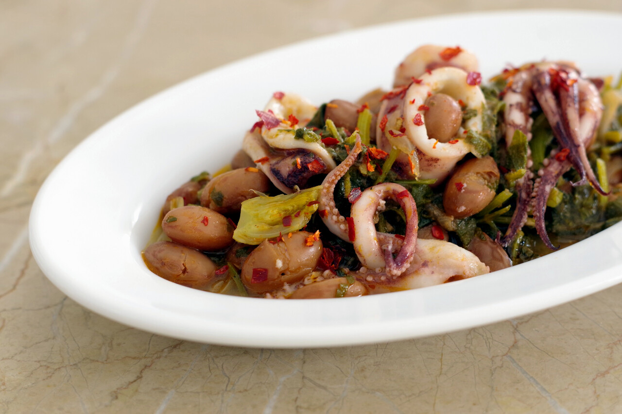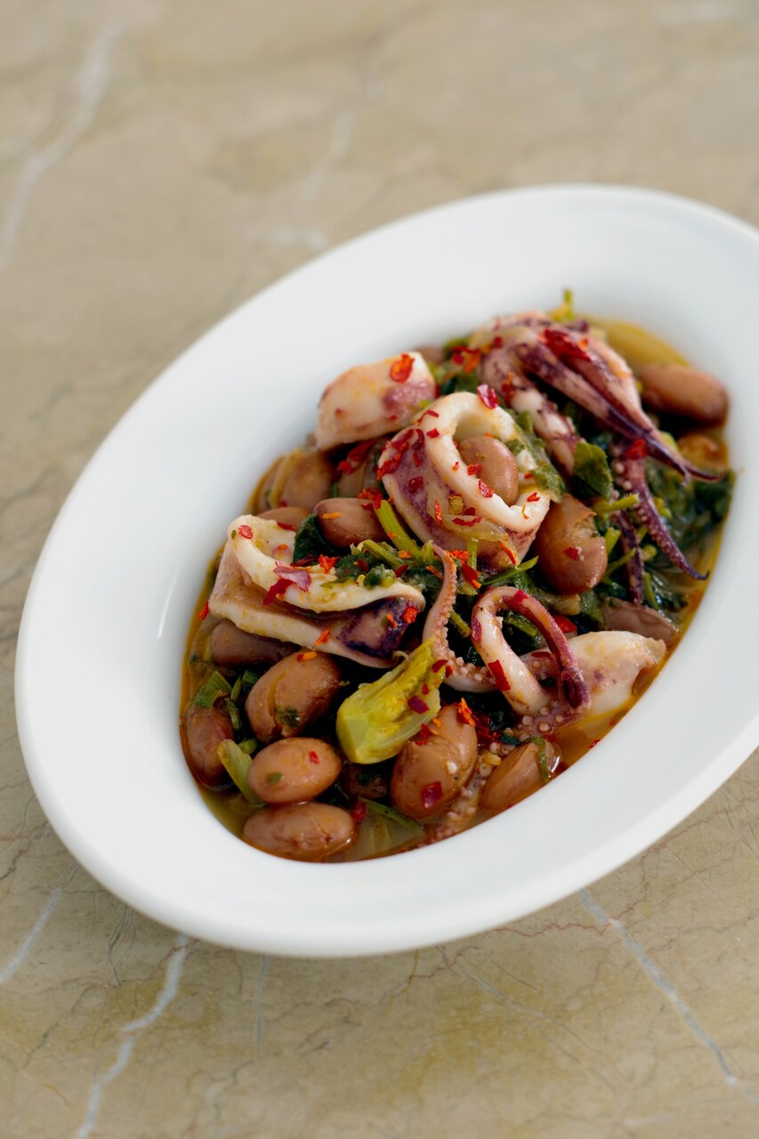 いかとうずら豆とカフカリスラの煮込み