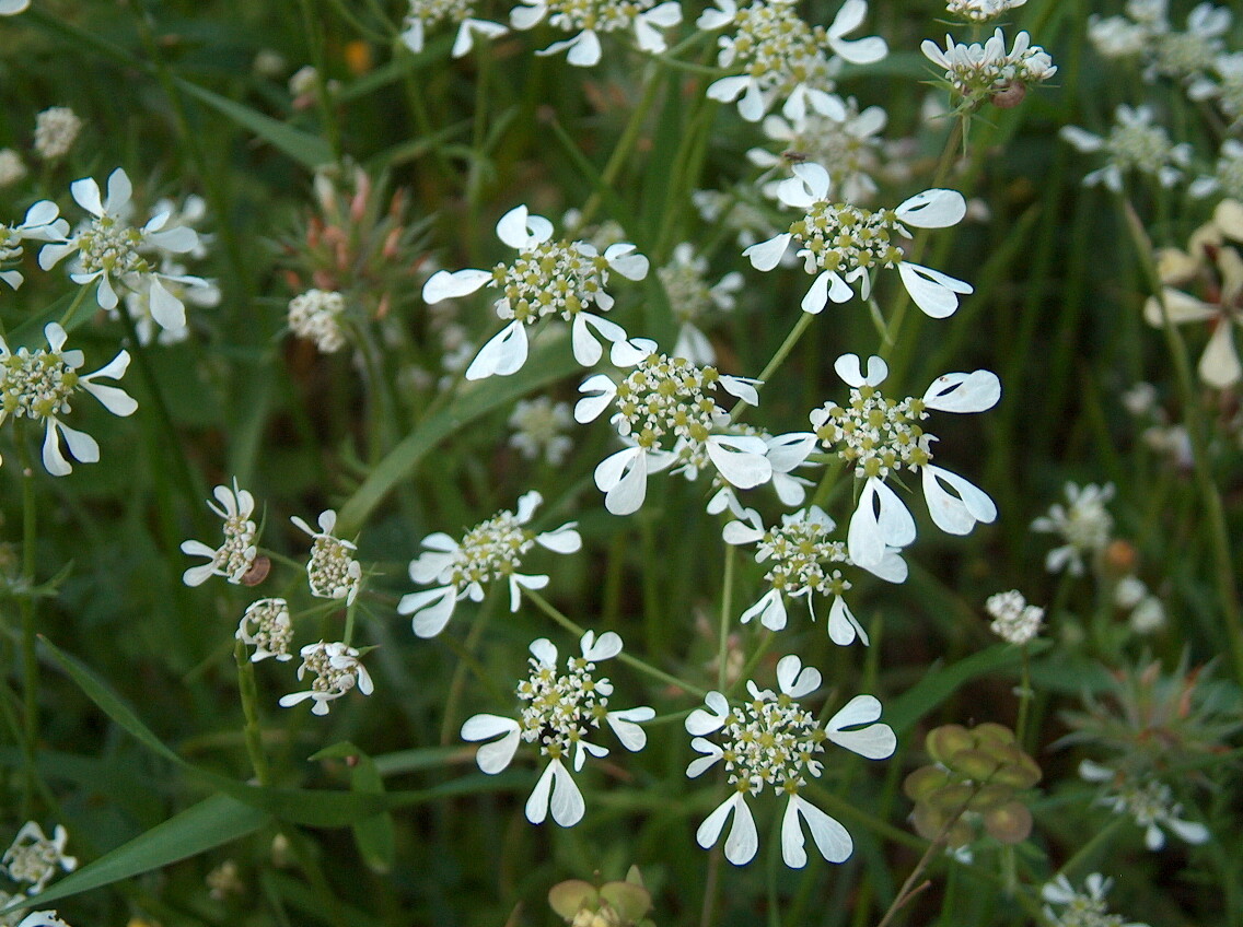 野山に生えているのも見かけますが、目につきやすいのは春に花を咲かせる時期で、花弁が白いハートの形をした可憐な姿がとても印象的です。ちなみにこういう見た目の花はセリ科によくあるようで、日本で知られるものだと、葉っぱや香りは違うのですがコリアンダーやオルラヤ(オルレア)の花が似ています。