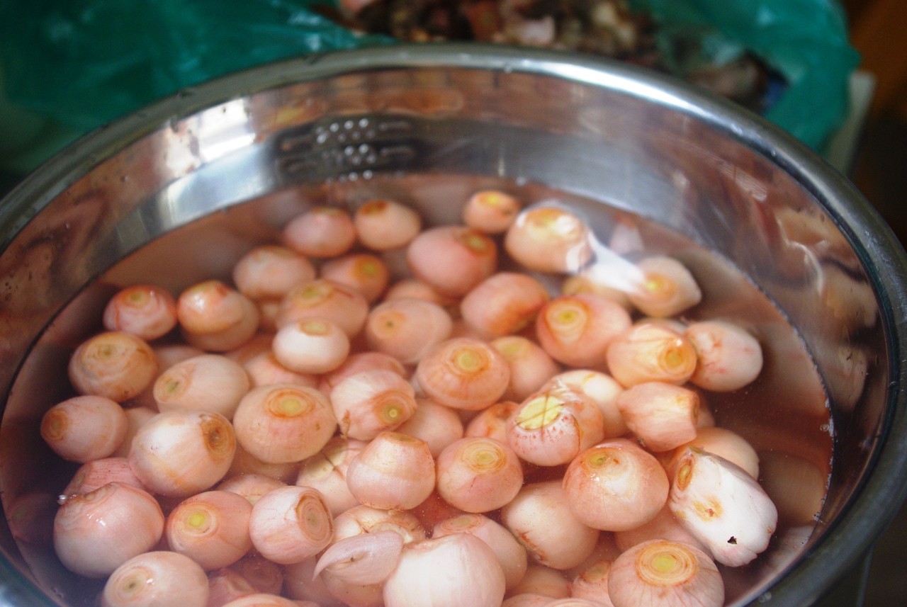 ハネムスカリ球根のピクルスは市販品もありますが、自作した方がおいしいのでこの時期市場に出回る球根を買って作ります。