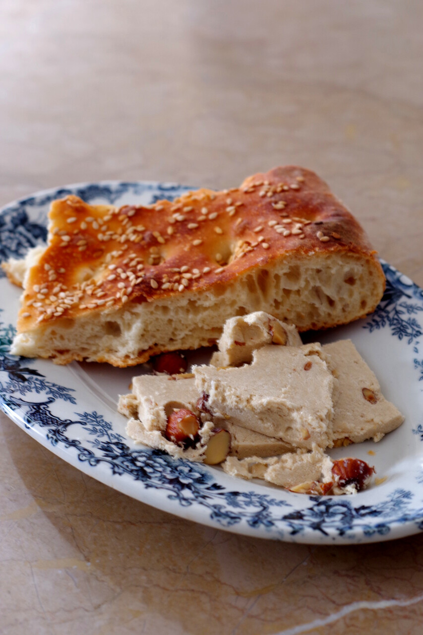 そして、タラマ(たらこのような魚卵のペースト)、ハルヴァ(サクサクホロホロした食感のごまペーストのヌガー)、オリーブやピクルス類、豆(特に白いんげんのスープ)など。