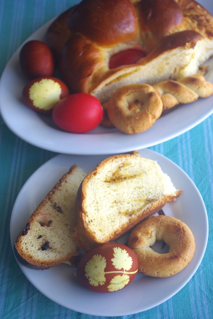 我が家では、いつものイースター菓子を今年も手作りしました。そして、ちょっと余裕があったので新キャラのヘビくんも登場させてみましたよ。ギリシャのイースターエッグは赤く染めた茹で卵(他の色もありますが、基本は赤です)ですが、夫のおばあちゃん