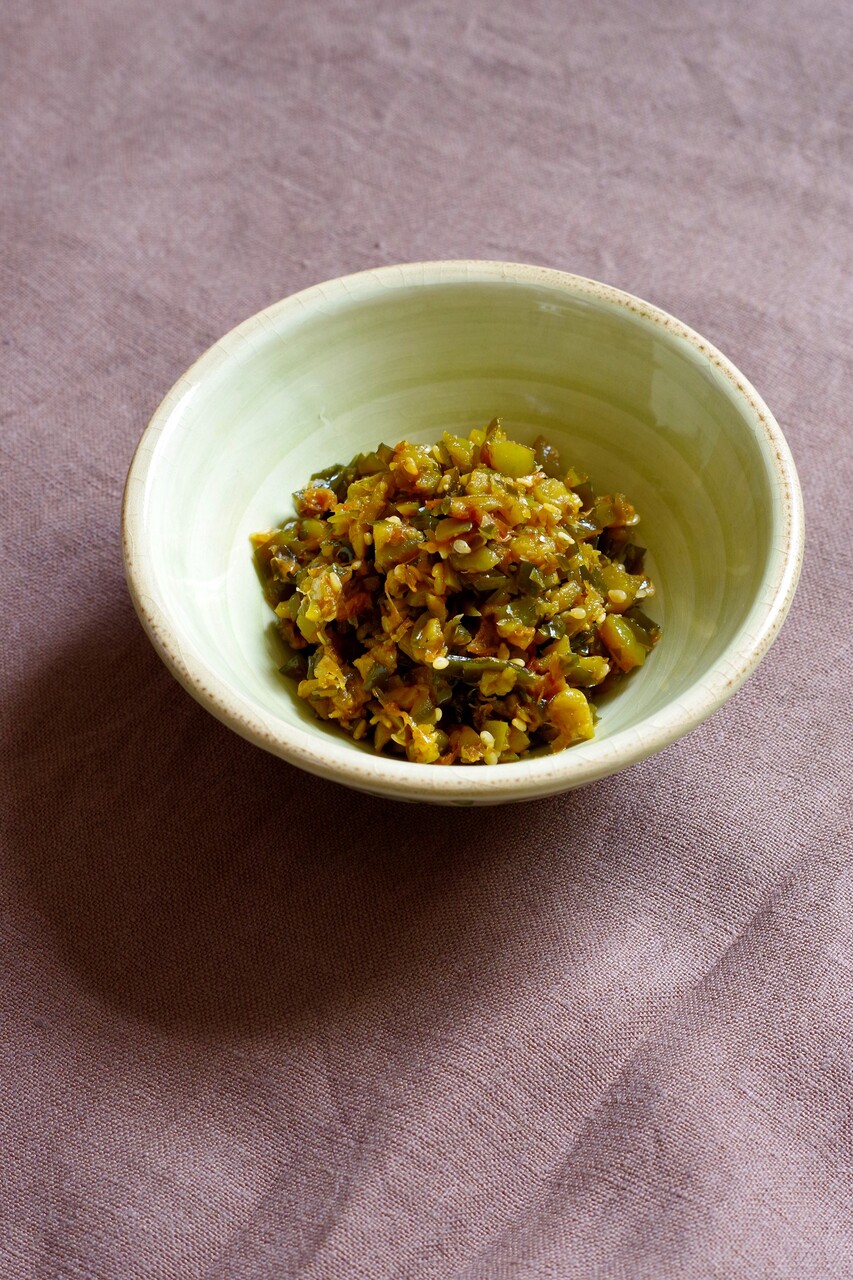 夏に干しておいたスベリヒユで、忘れることなく「ひょう干しの煮物」を作りました。