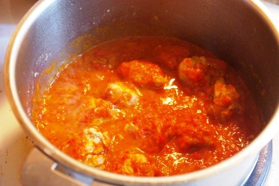 ひたひたぐらいに水を加え、肉が少し柔らかくなるまで煮る。