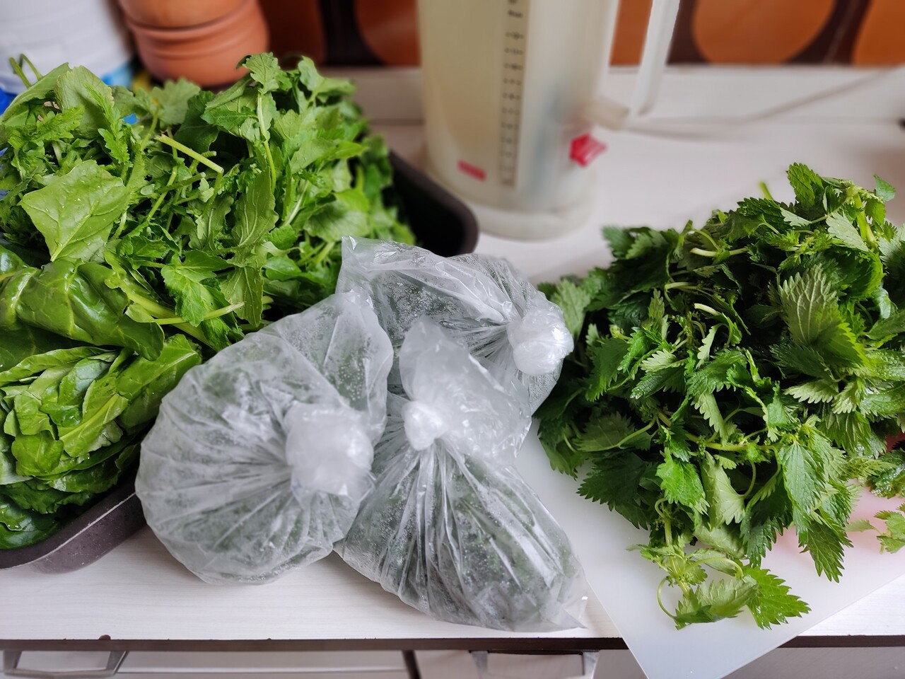 青菜は先述のとおり今回スベリヒユとふだんそうを使ったわけですが、シュウ酸が含まれるのでさっと下茹でしておくといいです。面倒なときはそのままで加えてしまうのだけど、やはり食べたあと口の中がキシキシします。