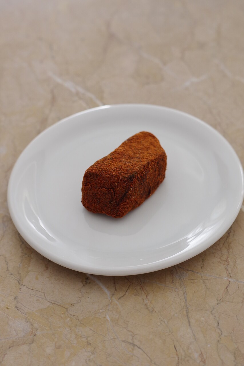 生っぽさが残りつつも熟成によるねっとりとした食感に変化し、しっかりと塩がきいたラケルダ。これをさらに乾燥熟成させたいなぁと、昔作ってみた“海のパストゥルマ”を思い出していたのでした。