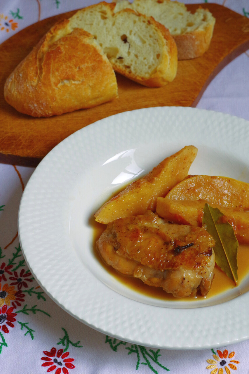 今回のこのぶどうは未熟でなくちゃんと熟れてるのにレモン並の酸味だったので、甘いぶどうと混ぜて食べるのも結構厳しい。どうせなら料理に使った方がよさそうなので、冷凍庫にあった鶏肉とあわせてオーブン焼きにしてみました。ちなみにアグリーデスと呼ばれる未熟ぶどうや緑の酸っぱいすももをラムなどの肉と一緒に調理するのは、いくつかの地方で見られる郷土料理です。